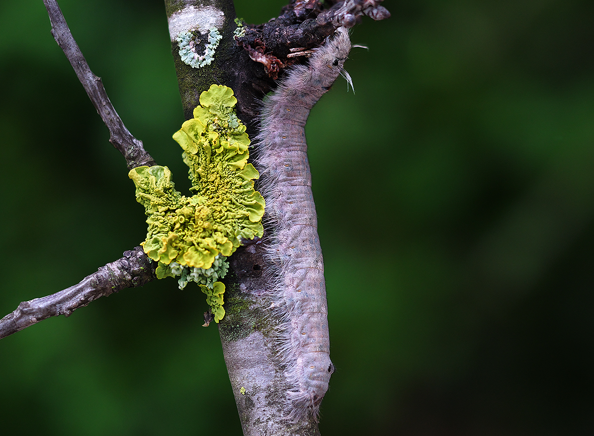 Húsenica: Húsenica je aktívna prevažne v noci. Cez deň sedí pritlačená na halúzke a je tak veľmi dobre maskovaná. Na brušnej strane má dlhšie chlpy ako na chrbte, čo ešte vylepšuje jej kamufláž. Zimuje na svojich hostiteľských drevinách. Vláknom si opradie miesto na konári alebo halúzke ku ktorej sa pritisne a takto hibernuje celú zimu až do jari. Na jar sa prebúdza a pije vodu na halúzkach. Potom začína žrať listy a dokončuje svoj vývoj.
