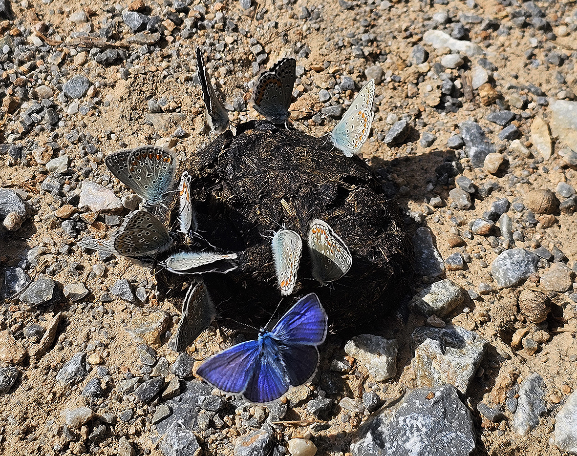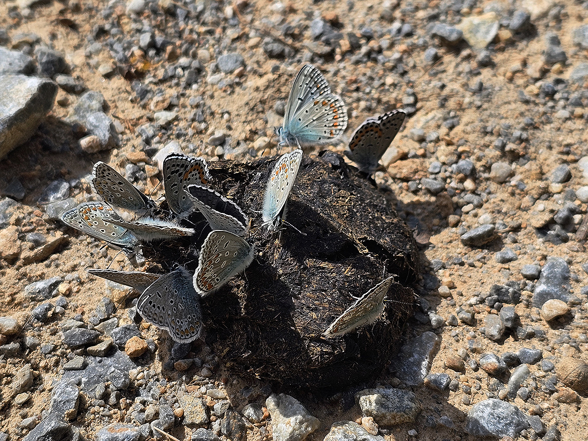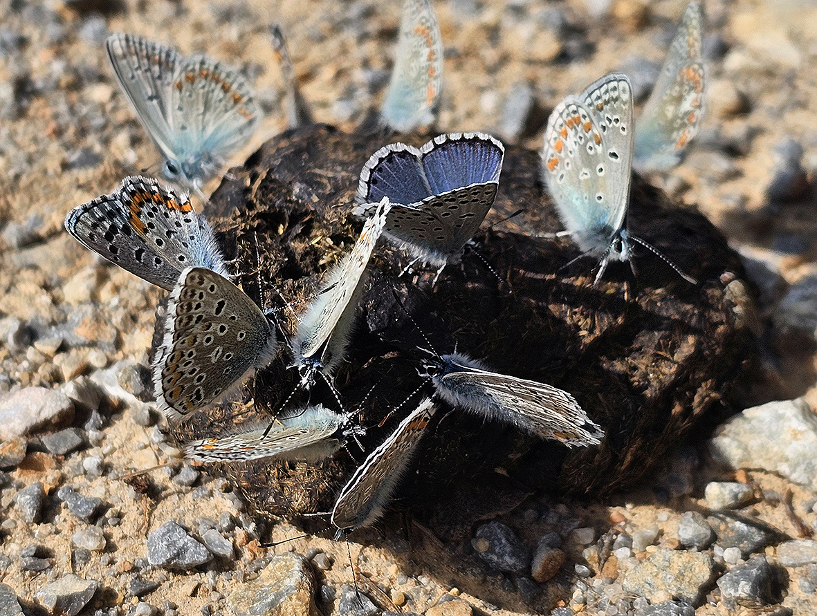 Biológia motýľa: Motýle lietajú na krátke vzdialenosti a z lokality sa príliš nevzďaľujú. Vyskytujú sa v jednotlivo a v malom počte. Lietajú nízko nad vegetáciou a často sadajú na kvety materinej dúšky, exkrementy zvierat alebo vlhkú zem.