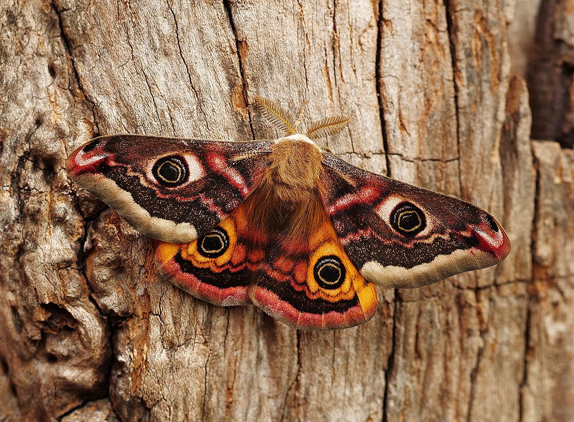 Od podobného Saturnia pavoniella sa líši najmä pruhovaným zadočkom samičky.