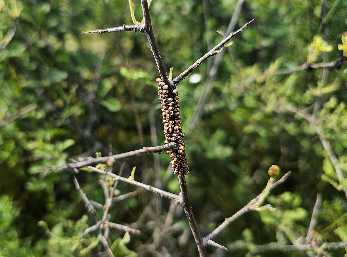Živné rastliny: Prunus spinosa, Rubus, Rosa, Rhamnus, Crataegus, Prunus padus...